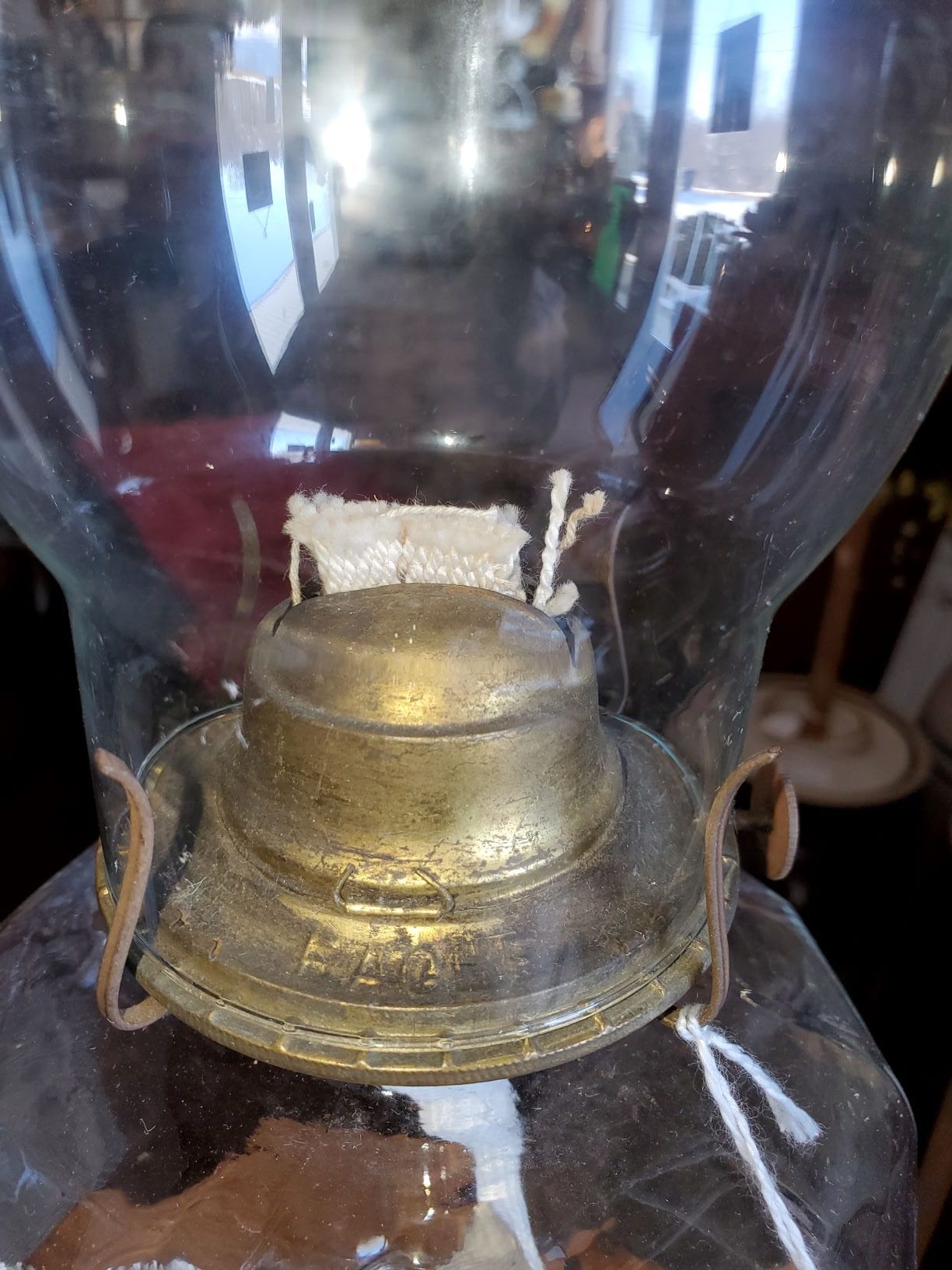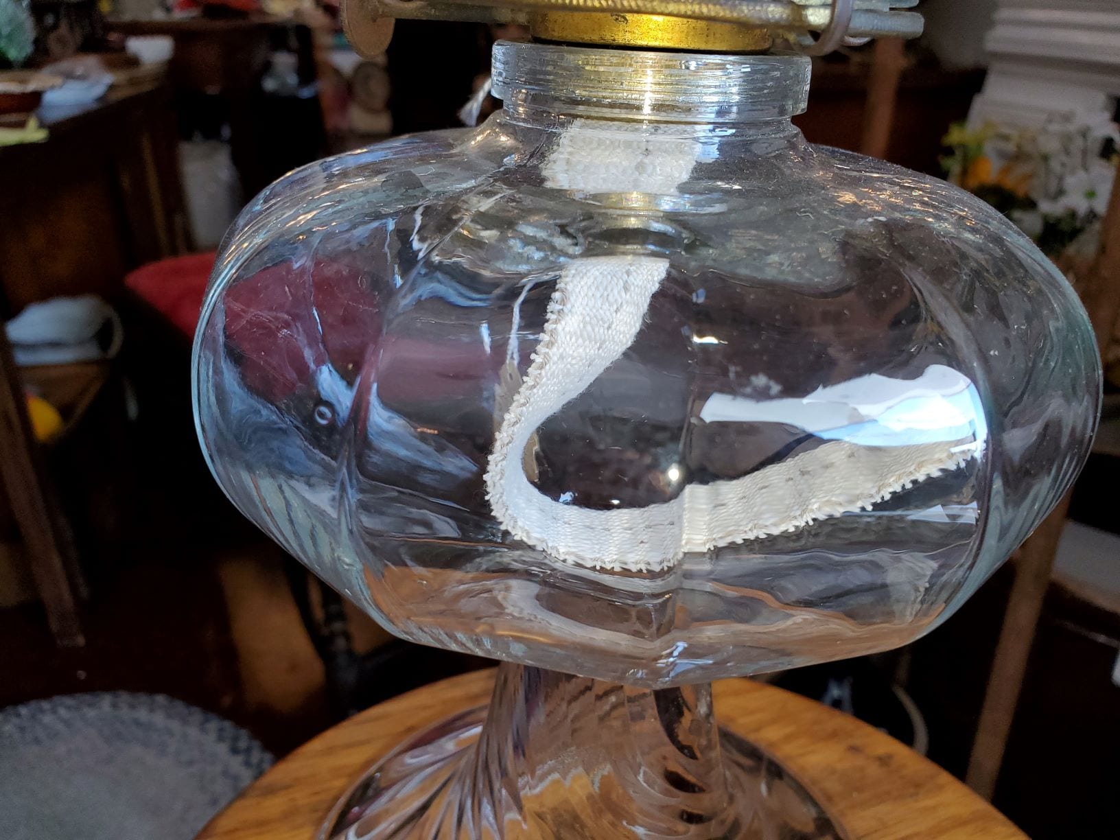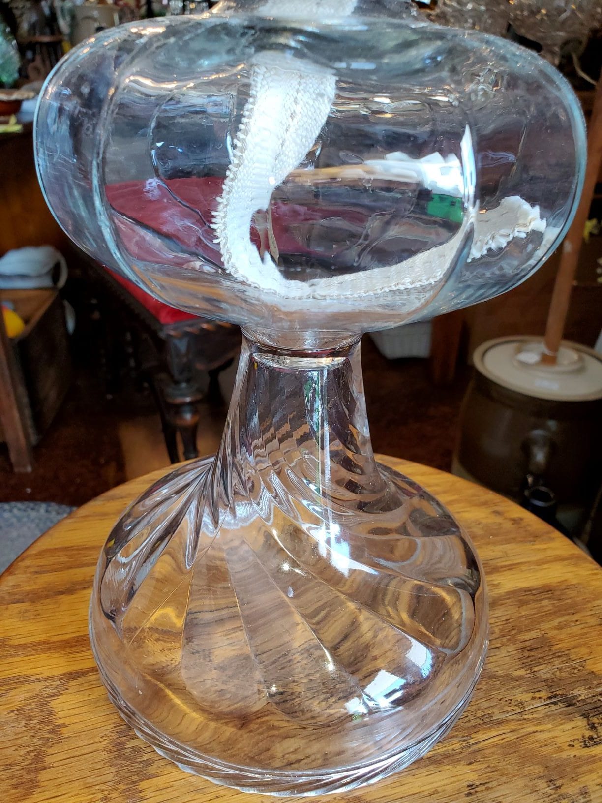 1800’s Oil lamp, swirl pattern on base, no chips, no cracks, 18″H, Item 1-874
