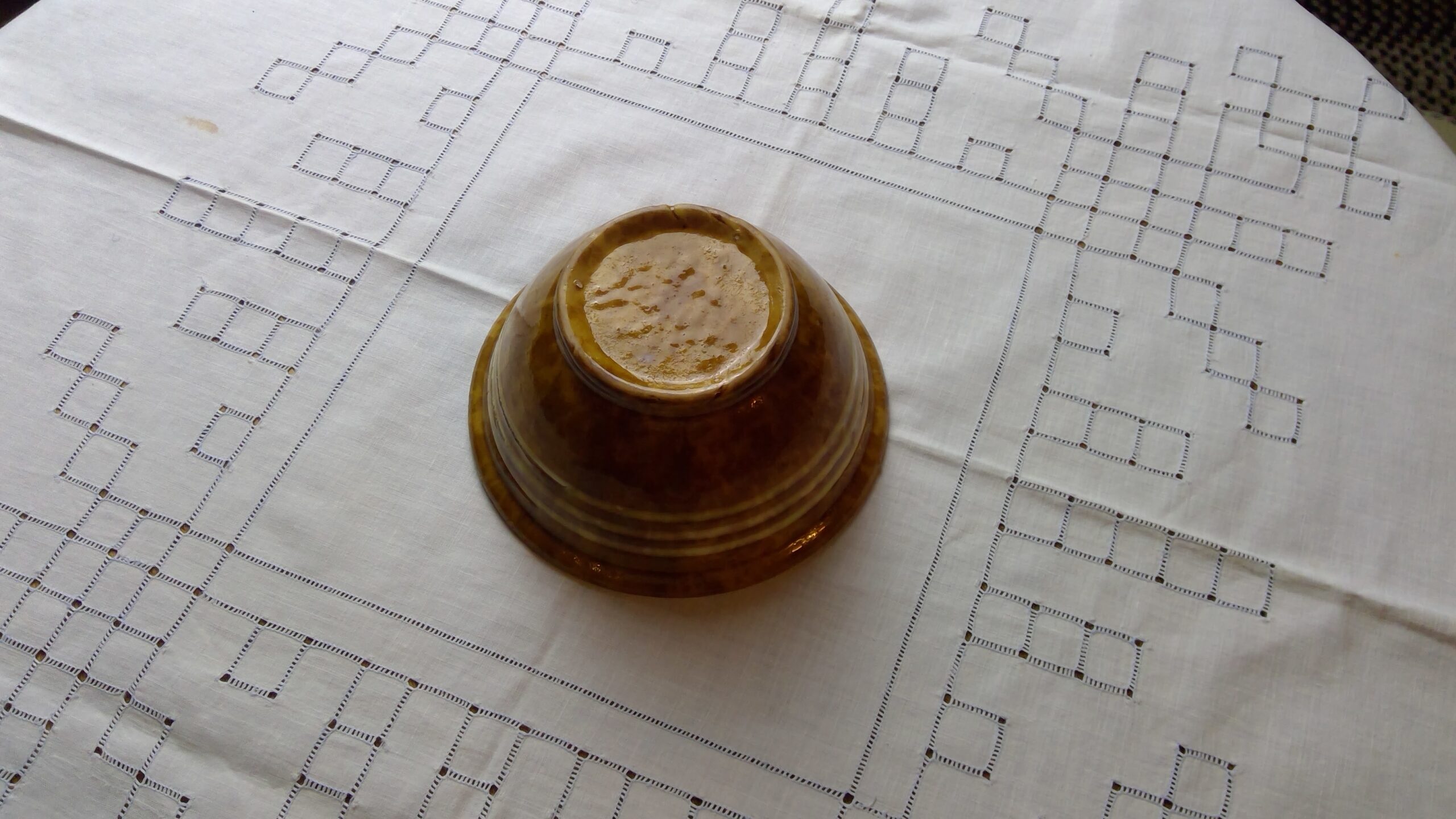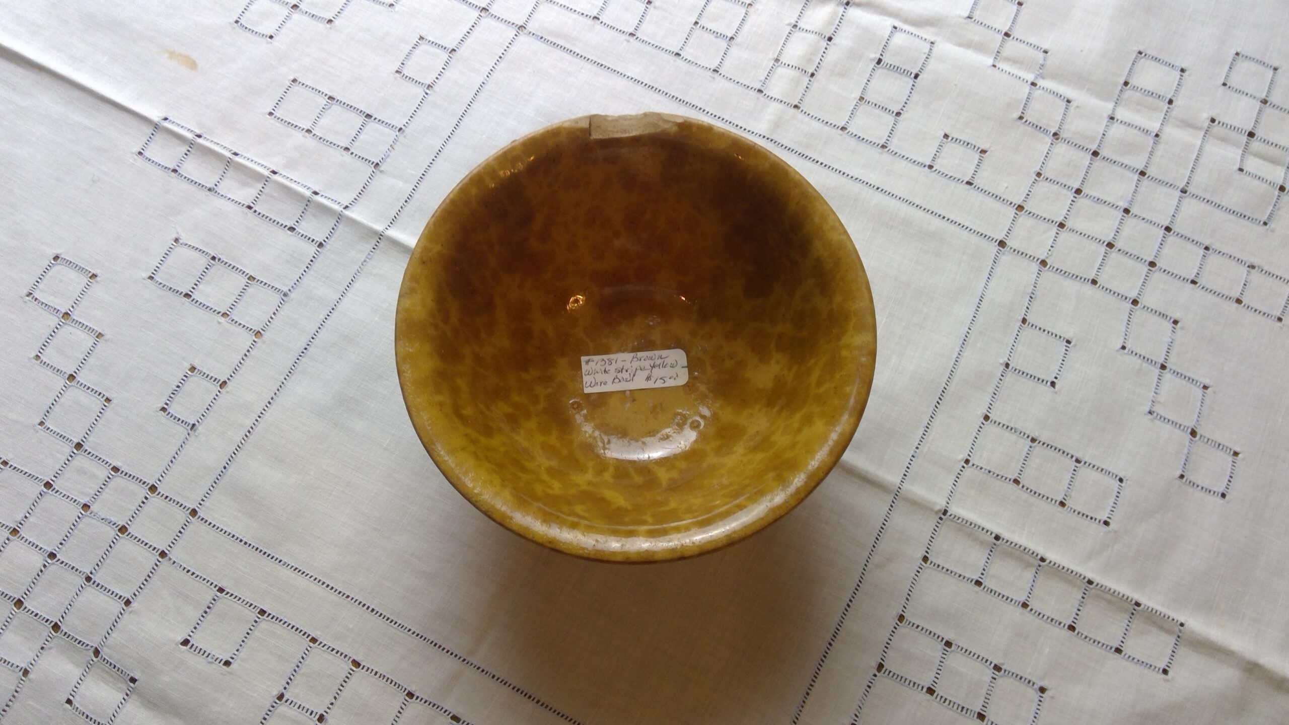 Brown with White Stripe Yellow Ware Bowl. (AS IS) Measures 2 1/2″ Tall x 6″ Wide.