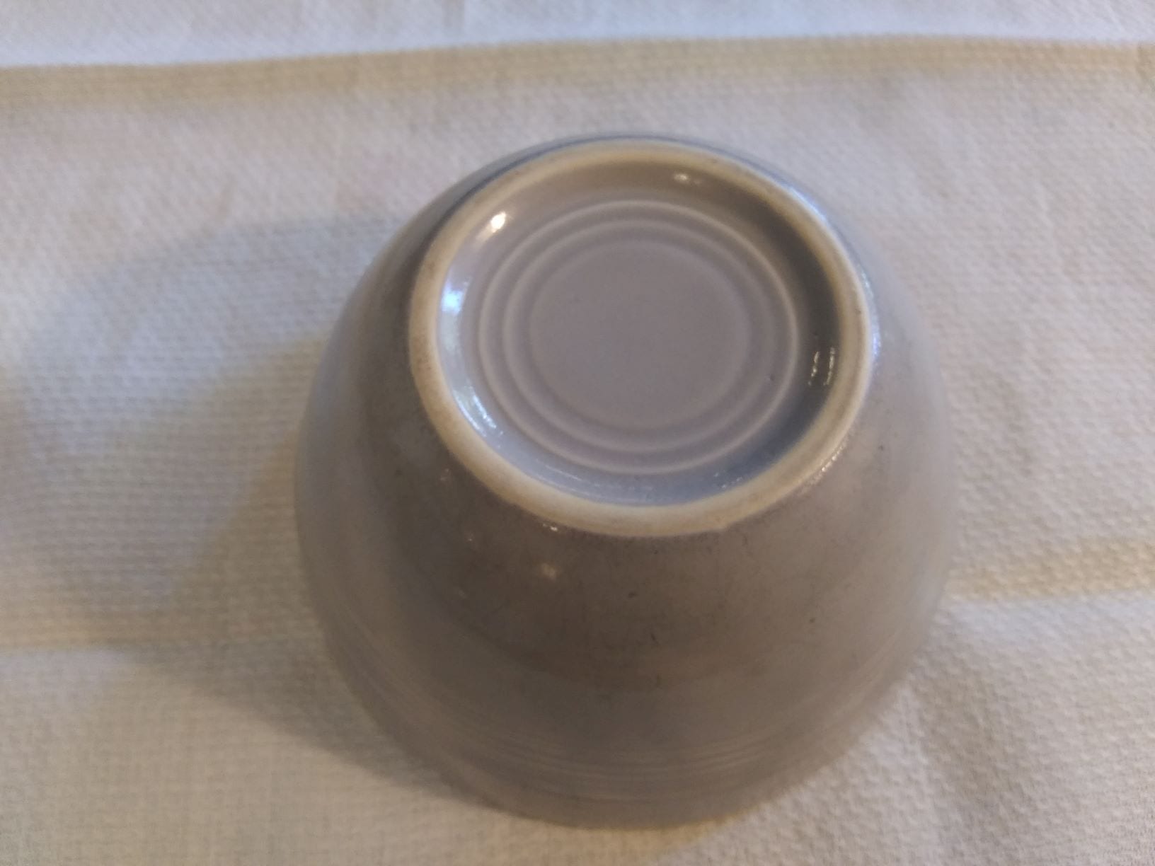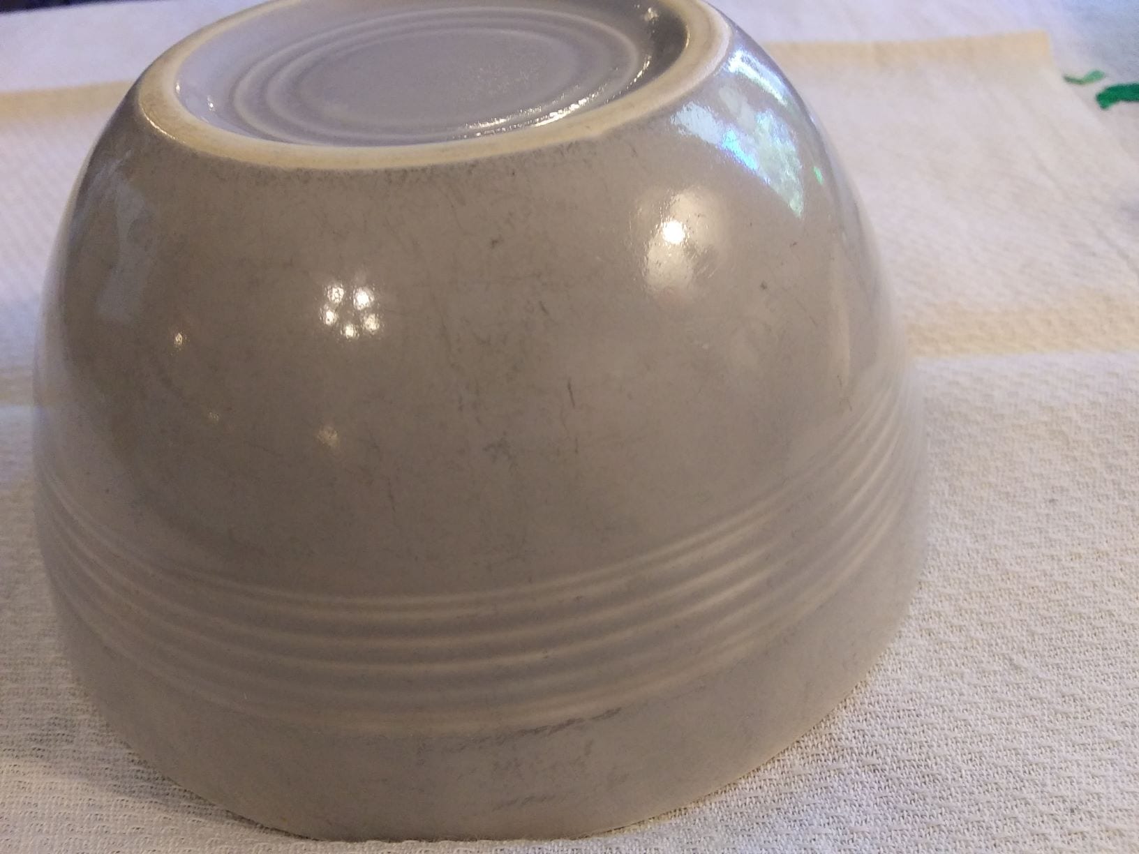 Fiesta Grey Chili Bowl. Measures 5″ in Diameter and Stands 2 1/2″ Tall. No Chips But Does Have Spots of Thin Paint. Overall Still a Very Good Item.